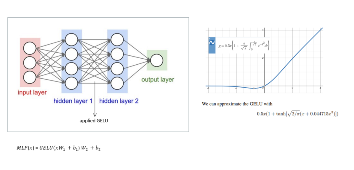 GELU, has a smoother, more continuous shape than the ReLU function, which can make it more effective at learning complex patterns in the data.